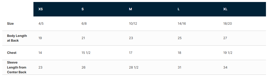 Click to view sizing chart.